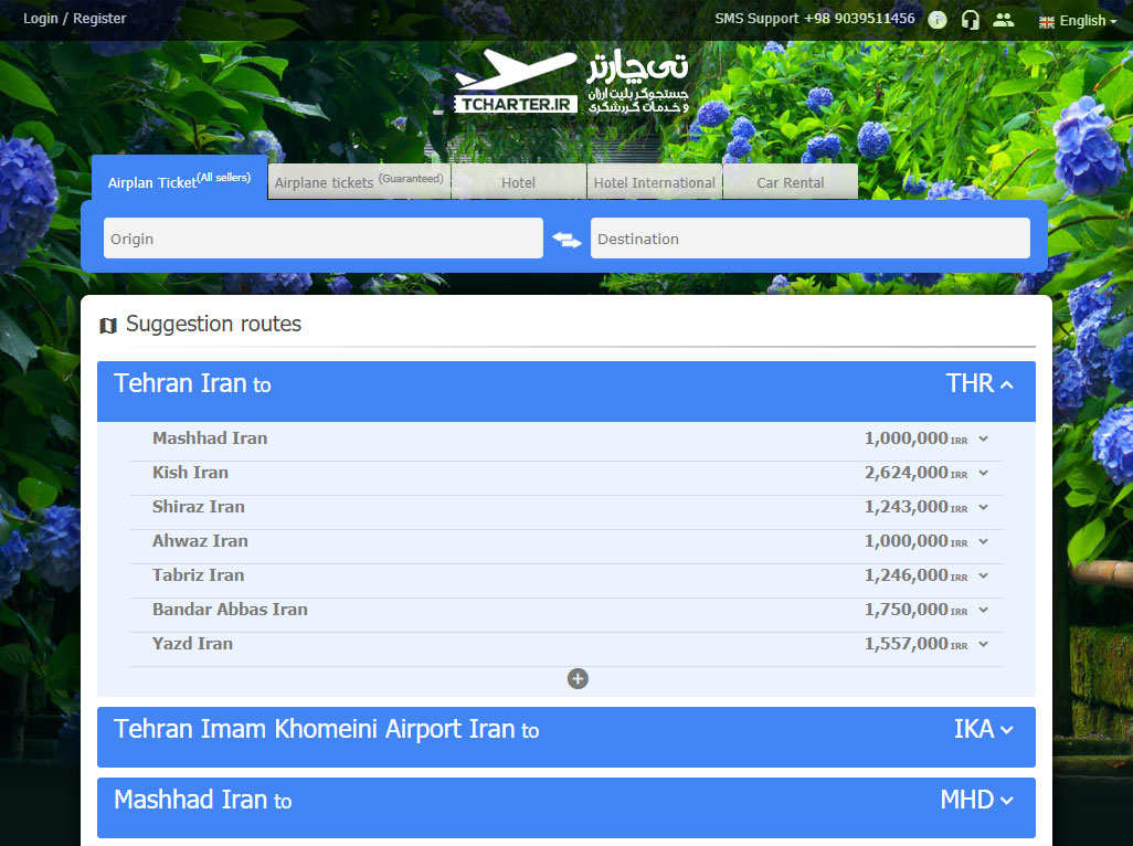 Tcharter provides information about the charter and regular airplane tickets,train tickets, car rental, hotel reservation and other tourism services from different service providers. By using this platform you can buy the cheapest ticket for the nearest time from the specific seller.