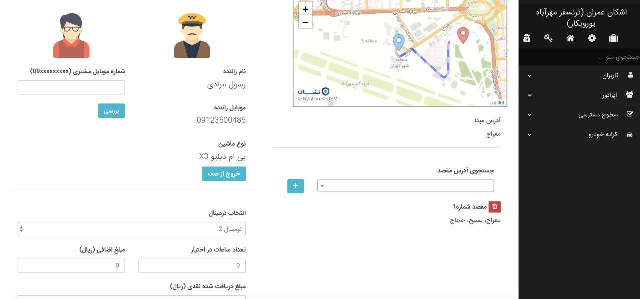 Airport taxi system with android application driver version, ordered by Europcar Iran.